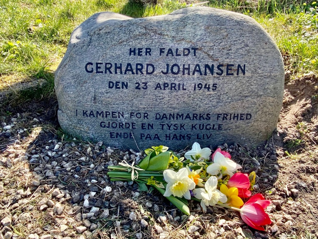 ‘Here fell Gerhard Johansen, 23 April 1945. In the fight for Denmark’s freedom, a German bullet ended his life.’