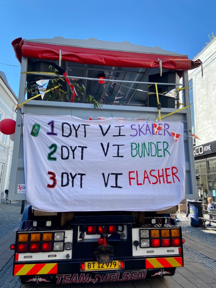 To be honest, this time of the year was always a bit alien to me. It was light years from any teenage experience I could relate to. For Danes though, it’s known as ’den soede studentertid’ – the sweet or lovely student time. I only fully realised why it was called this when my own bairns reached this stage a few years ago. I became caught up in the whole event. The graduation ceremonies are solemn but happy. There’s nothing better than seeing the smiles of your own as they receive their certificates and their student caps. Mine were bursting with pride, and also relief that the hard work was finally over. The year before, as ‘Second G’ students it was their job to help decorate the lorries for that year’s crop of graduates. But at last, it was their turn to ride the decorated open-top lorries – and to party!