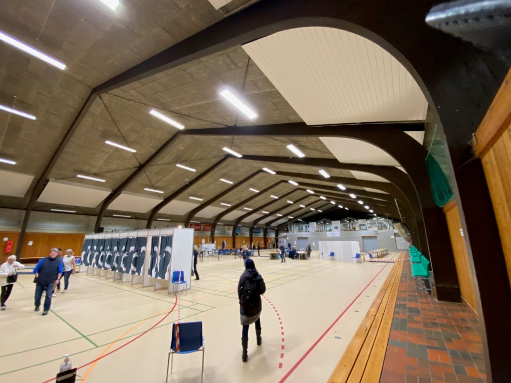 Enter the foyer of the local sports hall and you’re facing several posters from Louisiana. No, not the US state, but the museum of modern art on the coast not far from here. On another wall is an example of today’s ballot paper. This venue is the local polling centre.