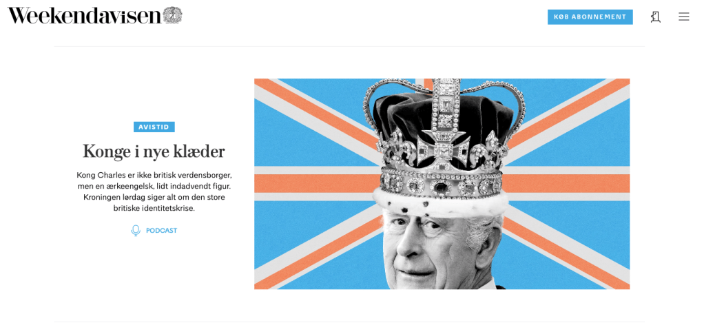 The Danish press has a slightly more sceptical view the Coronation. Denmark’s Weekendavisen reports that Charles III ‘inherits’ a UK in the middle an identity crisis. “More and more do not want to be British”