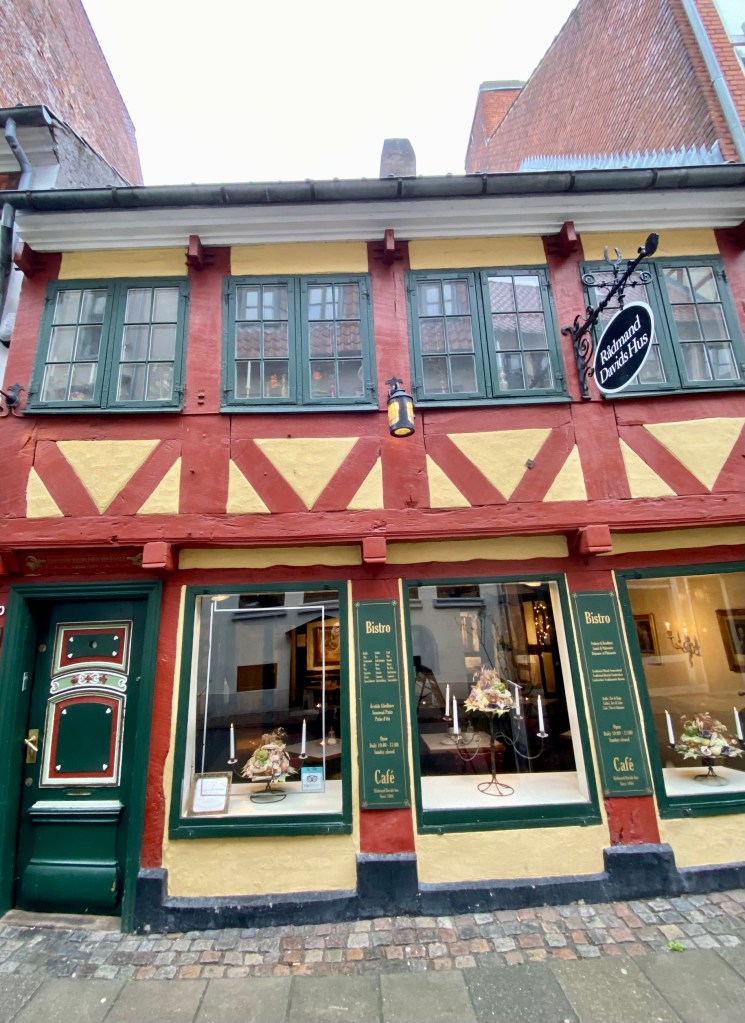 ‘Raadmand Davids Hus’ is one of the oldest and best conserved houses in Helsingør. It was built by David Mellvin, a second-generation Scottish exile in 1694. He was a high-standing member of the city administration. Today his house is a cosy lunch cafe — and I’m here with my own second generation Scottish exile. It’s all bare beams and low ceilings. Quite a nice place to stop by for coffee and yummy cake.