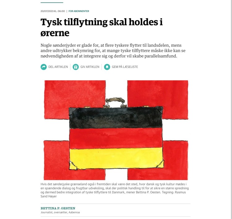 The only area where a ‘settler class’ could be an issue is in southern Jutland – Germans are crossing the border in increasing numbers. We Scots are certainly familiar with an influx of settlers from our larger southern neighbour. Unlike Scotland, though, with its growing settler class, there are comparatively few Germans in Denmark. They are for the most part located around the borderland and in summer on the west coast. That said, some commentators have warned about the danger of parallel cultures emerging. Integration, or the lack of, is something to be monitored, apparently. It’s what small independent countries do. We ignore it at our peril.