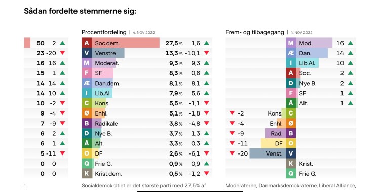A red majority was returned in November 2022, but PM Mette Frederiksen did not want to govern with a ‘narrowly-mandated coalition’. Another motive, of course, may have been the antipathy she felt from other members of the red block. It was half-expected that she would step down as PM after various scandals. But a blue-red coalition suddenly became a possibility because of Lars Løkke Rasmussen (usually referred to as ‘Lars Løkke’) and his ‘Moderaterne’ mentioned above. So it’s ironic that PM Mette Frederiksen’s Red-Blue coalition of convenience, entered into for ‘stability’, is falling apart after only a year in office. Dodgy coalitions are not unique to Denmark. The extent of the damage being done by the zany Green-SNP coalition in the current Scottish Parliament may first be measured at #Holyrood2026, as almost no one is up for resigning – despite catastrophic failures, both personal and policy-wise.
