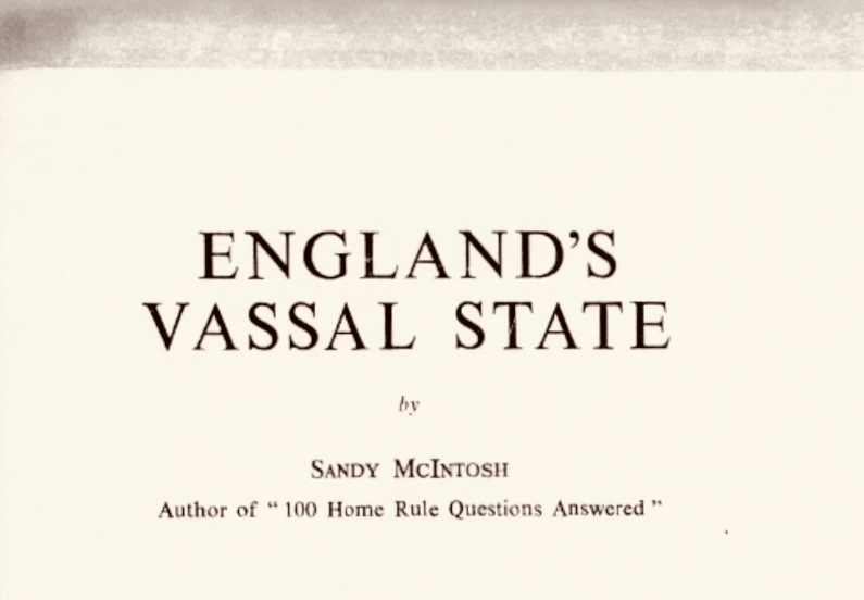 From England’s Vassal State by Sandy McIntosh, author of “100 Home Rule Questions Answered”. First Published, April 1964.