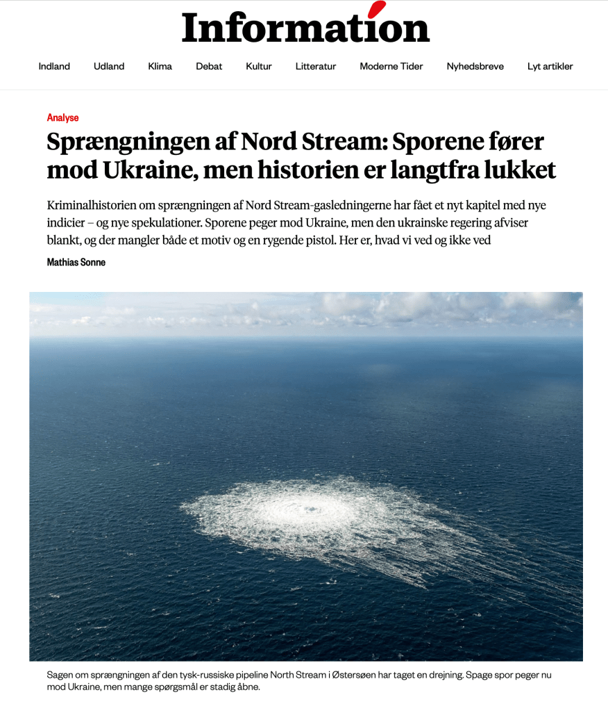 Danes were informed, not consulted, about a huge increase in military spending and to be prepared for attacks on vital infrastructure. There was no mention of Nordstream, of course.